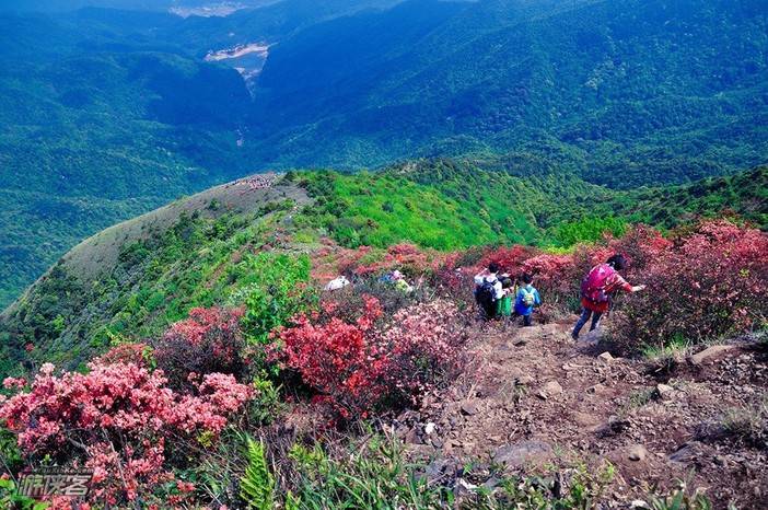 春天到来的三月底四月初,满山遍野都是红灿灿的杜鹃花,花开的时候一簇簇红艳艳映红一片天,远远看去就像是红烛辉映天空,仿佛是一座巨型的红腊烛通向天庭,故被称之为——通天蜡烛。 该线路为非传统的线路,难度比传统的稍大,但风景更佳。