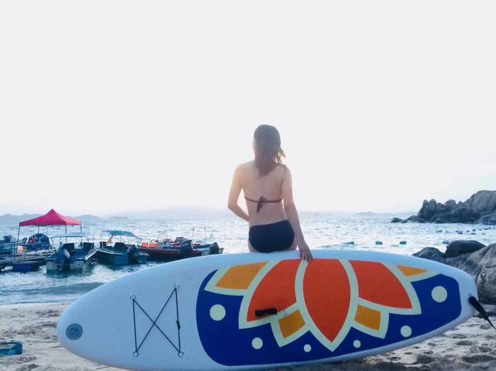 桨板运动是一项团队项目,更多的是互动、增加了很多互动环节,增加了很多乐趣,很多公司将桨板运动纳入团建范围。因为简单、容易玩、玩法多,躺着,趴着,跪着,站着,坐着,随时跳下水游泳,还可以情侣桨板、萌宠桨板、亲子桨板、桨板瑜伽、团队拼板花、多板竞速、桨板美人鱼等等。