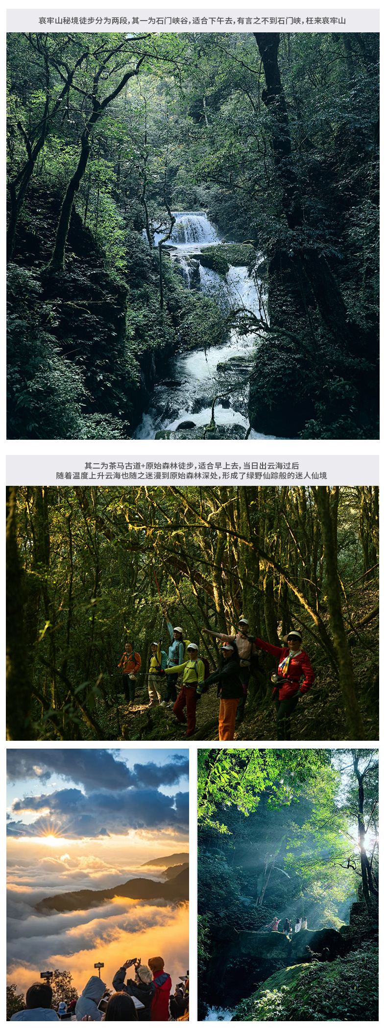 酒店早餐后我们统一前往云南哀牢山秘境,全程高速约4小时抵达哀牢山景区。一路上您可欣赏沿途的风景,感受大自然的魅力。约中午我们抵达新平嘎洒镇后,可以体验哀牢山下花腰傣民族小寨子的傣味。午餐后开始进入哀牢山腹地,首先映入眼帘的是【南恩瀑布】高悬于山崖之上,飞流直下,形成一道壮观的水帘。站在瀑布前,您会被它的气势所震撼,仿佛置身于仙境之中。随后前往参观【陇西世族庄园】,在这里,解密古代哀牢国的兴衰历史以及土司制度的历史缩影,了解关于云南边陲小镇的部分历史记载;随后我们将前往【石门峡】。这里峡谷幽深,两侧峭壁耸立,中间一条清澈的小溪蜿蜒流淌。沿着小溪前行,您会感受到一种宁静,又因其自然的景色酷似九寨沟,被游客称为“哀牢山上的九寨沟”。