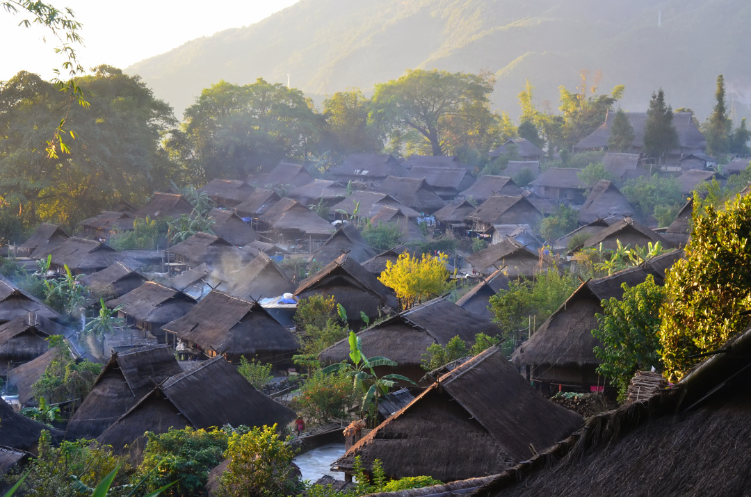 早餐后乘车前往即将消失的原始部落老村寨【翁丁村】(含电瓶车),到达翁丁村口时,恭候多时的“黑熊哥”和“黑珍珠”已经夹道相迎了,载歌载舞欢迎着远方的来客。一整个上午都是属于翁丁的自由探索时间,徜徉在原始的茅草屋间,感受曾经佤族人的生活。近百户佤族传统茅草屋就藏于这片深山中,保留了原始佤族民居建筑风格和原始佤族风土人情,不但是迄今为止保存完好的原始群居村落。