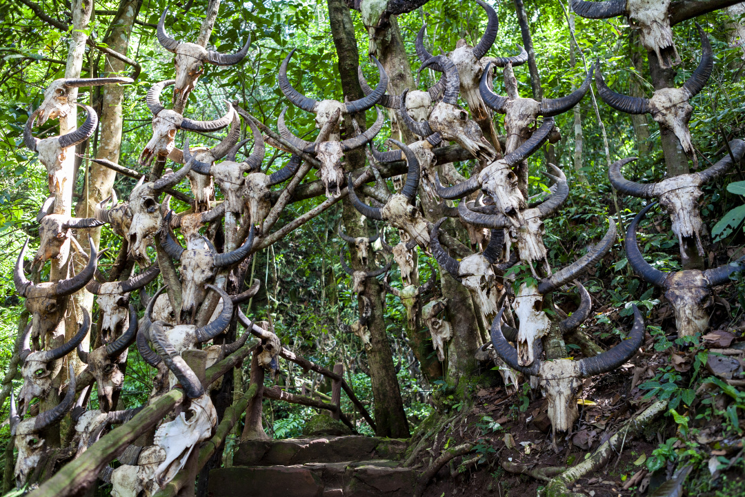 早餐后我们驱车前往佤族圣地西盟,【勐梭龙潭】是一个热带雨林淡水湖泊,这里林幽草密,常年云雾缭绕,幽深的谷底树梢和悬崖峭壁上悬挂着无数水牛头骨桩,到达后我们一起沿着美丽的勐梭龙潭走走,途中经过挂满牛头的【龙摩爷圣地】,世代居住在阿佤山上的佤族信奉万物有灵的自然崇拜,自古以牛为神圣吉祥物和崇拜图腾。走入龙摩爷,庄严肃穆、千姿百态,有着视觉冲击力和心灵震撼力的牛头,在这里感受原始崇拜的力量。