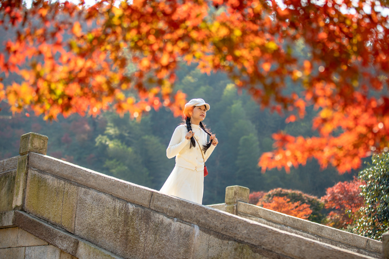 踏着脚下枫叶铺满的“红地毯”
