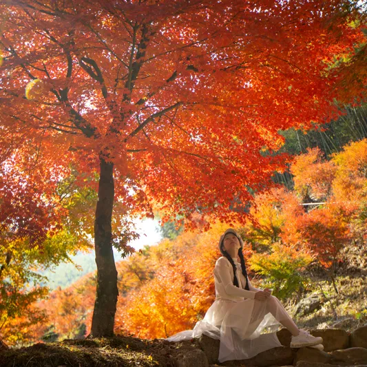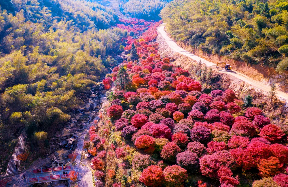 穿行在千亩枫叶林之间