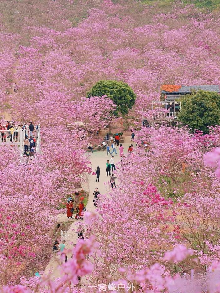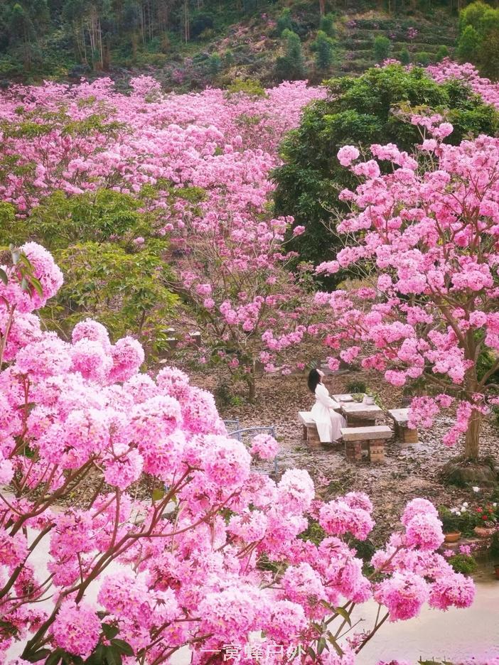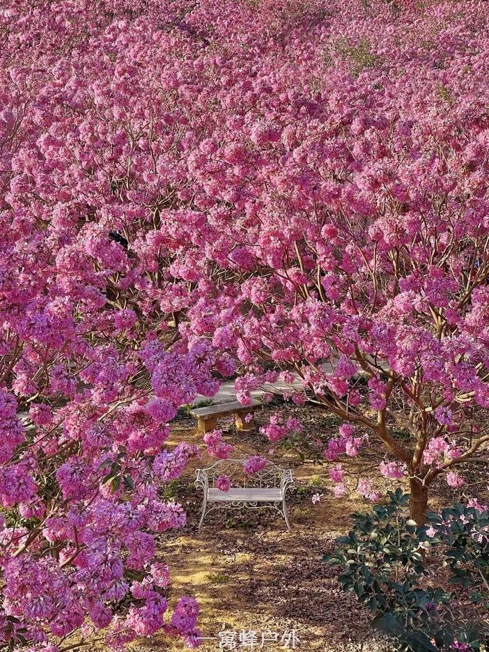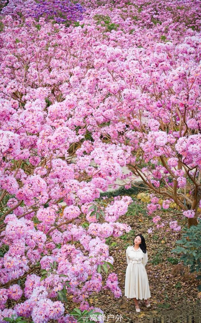 景点一:几十万平米的紫花风铃,姹紫千红的紫花风铃盛开,会让你深深的感到震撼。
