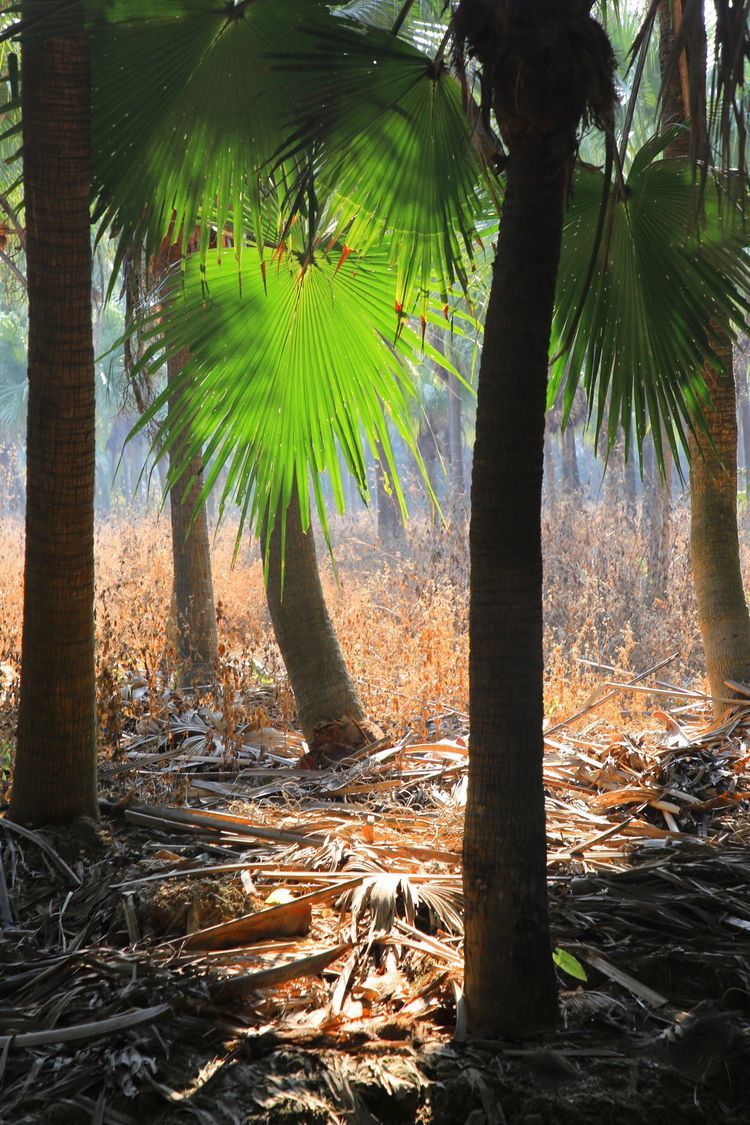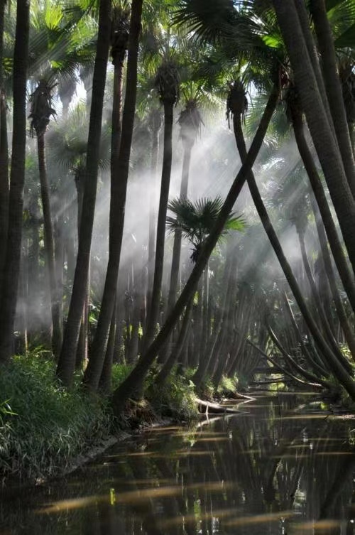 11:00 左右抵达蒲葵之乡,这个是中国最大的蒲葵林,阳光照射错落密布葵树形成了光与影的世界,蒲葵园中不定期会有人工烟雾,就像误入了仙境一般