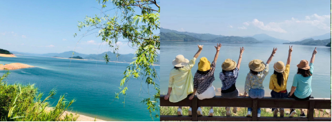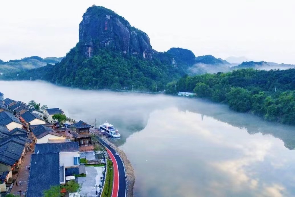 东江湖素有:小洞庭湖”船在湖中游,碧绿的湖水如此的秀气,丹霞地貌的群山又是何等的俊美,它们遥相呼应着,那山那水那雾气浑然一体,美到让你情不自禁陶醉其中!