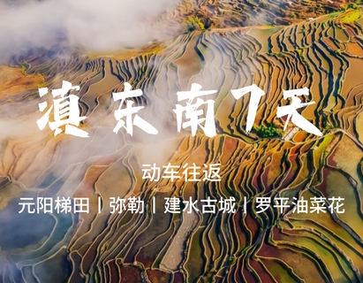 我们用7天时间,逃离城市喧嚣,在彩云栖息的秘境,风过之处皆是故事。去感受千年古城“建水古城”,感受罗平金色海洋与喀斯特的完美邂逅,丈量历史文化遗产元阳梯田,跟我们一起,用脚步丈量这方神奇土地,在山水人文中,向山野奔赴,开启一场涤荡心灵的美景人文之旅;