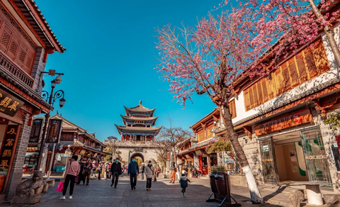 早餐后,乘车前往【大理古城-洋人街】位于云南省西部,又名叶榆城、紫城,建于明洪武十五年公元1382年,古城外有条护城河,古城四周有城墙,东、西、南、北各设一门,均有城楼,四角还有角楼。城内街道为典型的棋盘式布局,街巷间有一些老宅,也仍可寻昔日风貌,庭院里花木扶疏,鸟鸣声声,户外溪渠流水淙淙。“三家一眼井,一户几盆花”的景象依然。