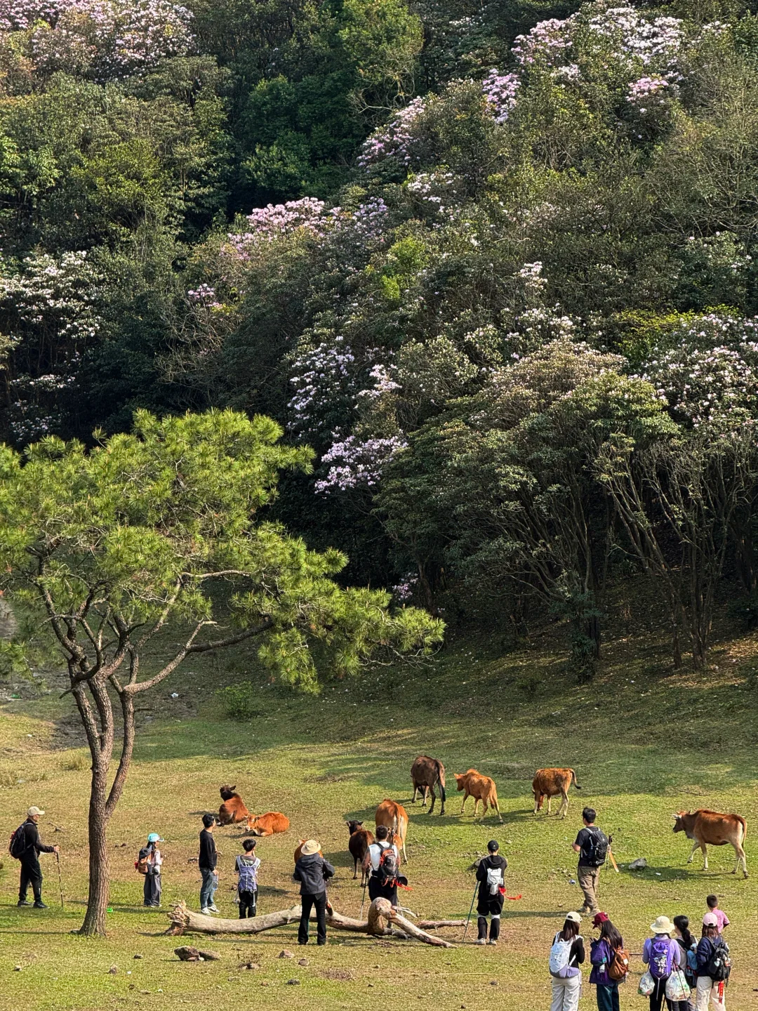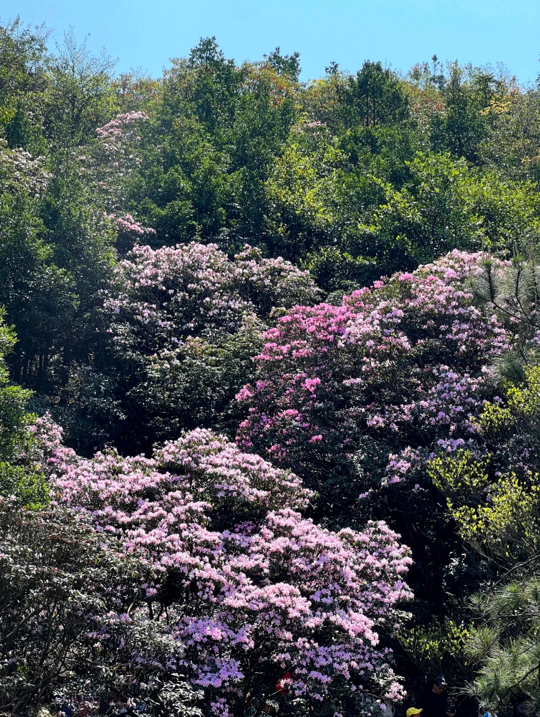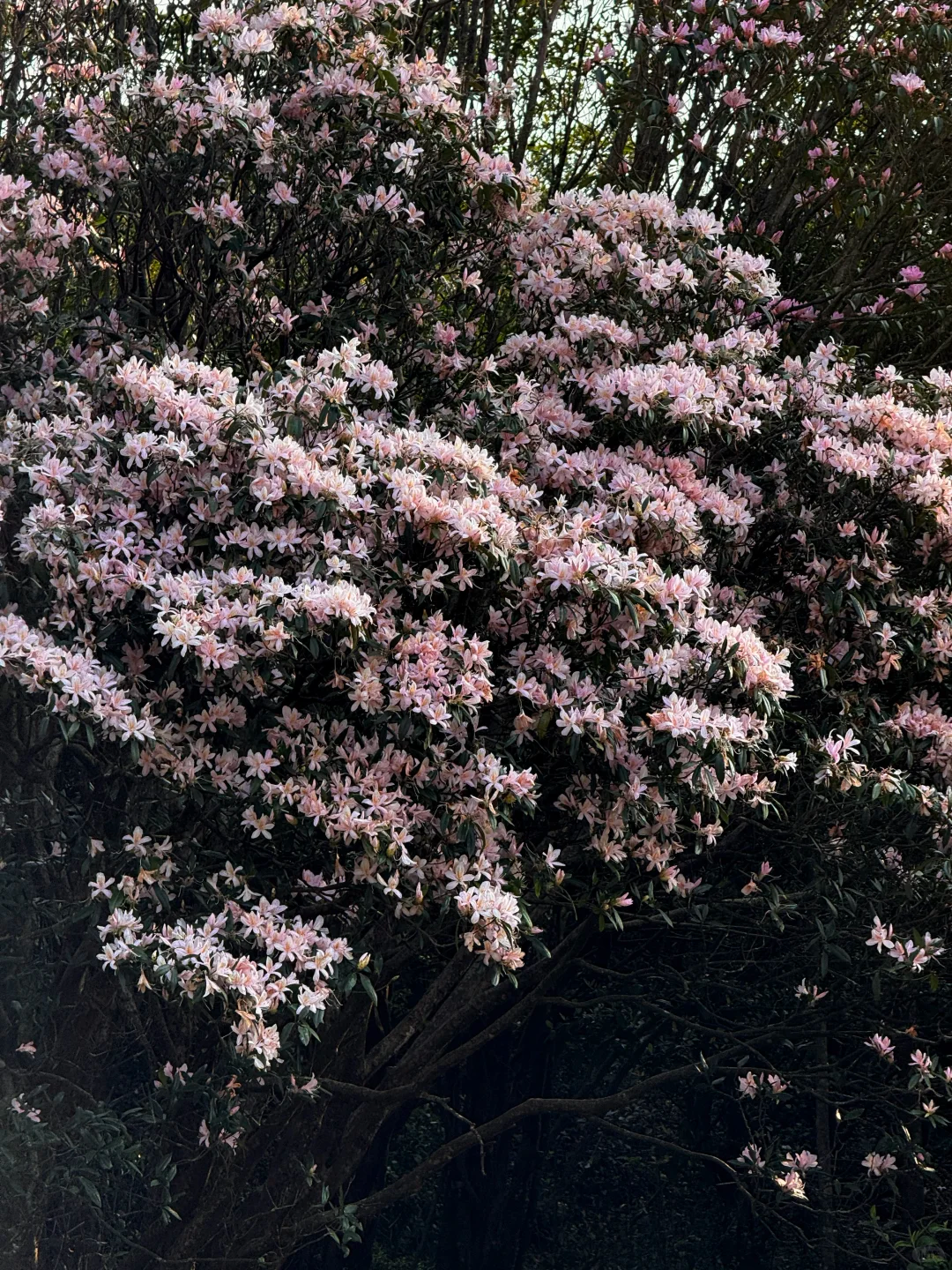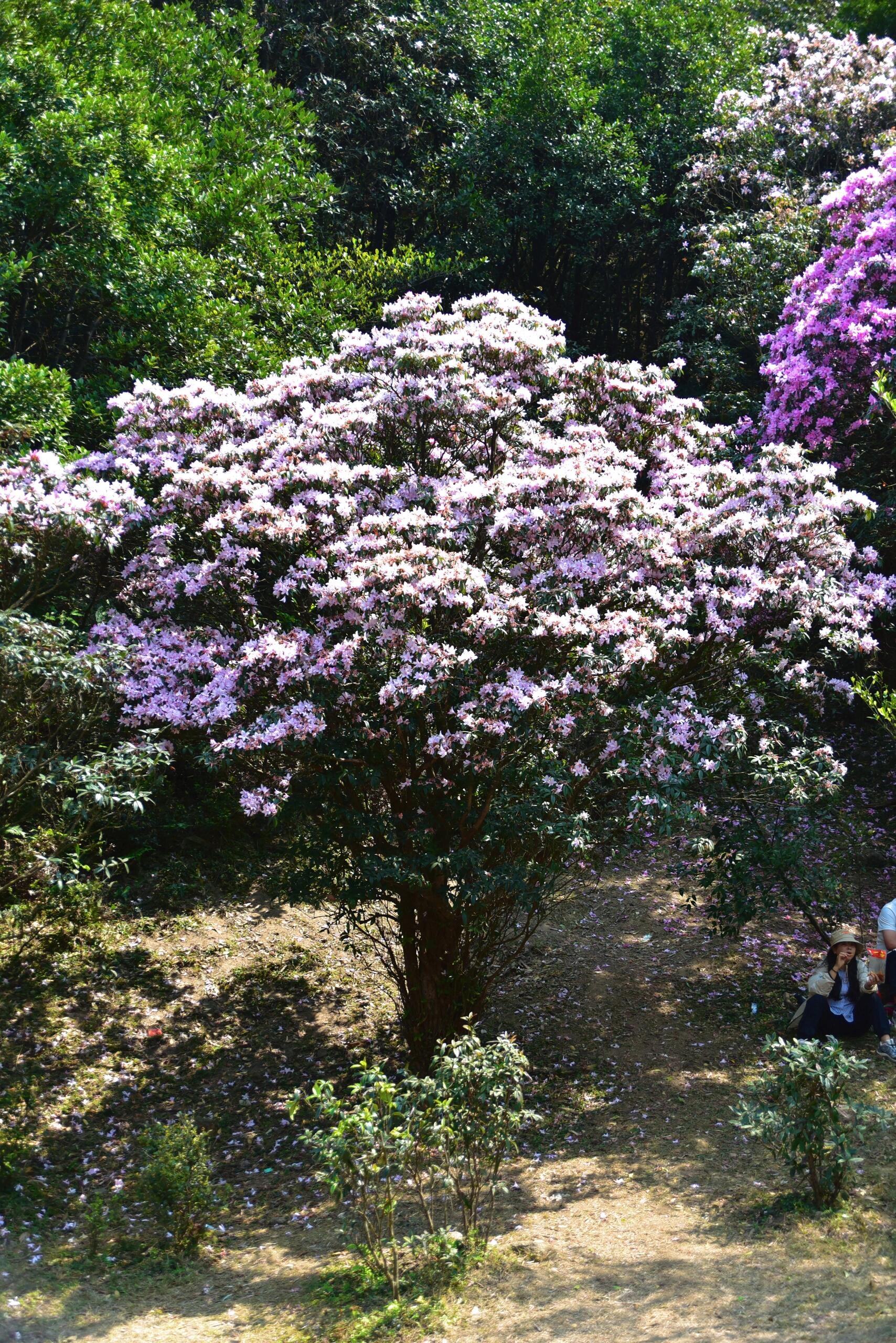 每年三月中下旬,都会迎来大批的驴友,因为此处特有的云锦杜鹃,不是通天蜡烛的灌木杜鹃,而是乔木杜鹃,且多是百年树龄的古树,许多都是3m多高,实为罕见。且八排山的杜鹃花颜色多样,大多粉红似初恋,落花如雪,非常动人