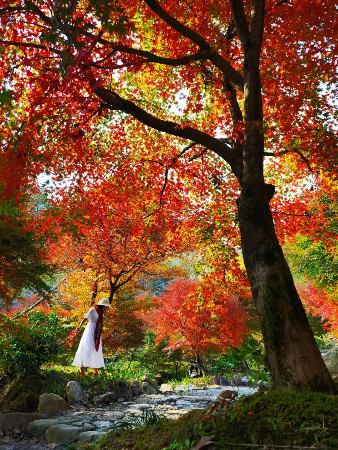 漫山的枫叶里,深红、粉红、橙红、橘红,层次分明