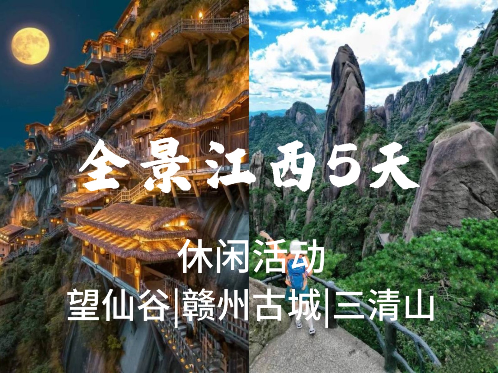 2、望仙谷门票140,三清山套票(门票+往返索道)245元/人,瑶里古镇景区门票75,滕王阁白天票50元,晚上演出票168元(以实际为准)。