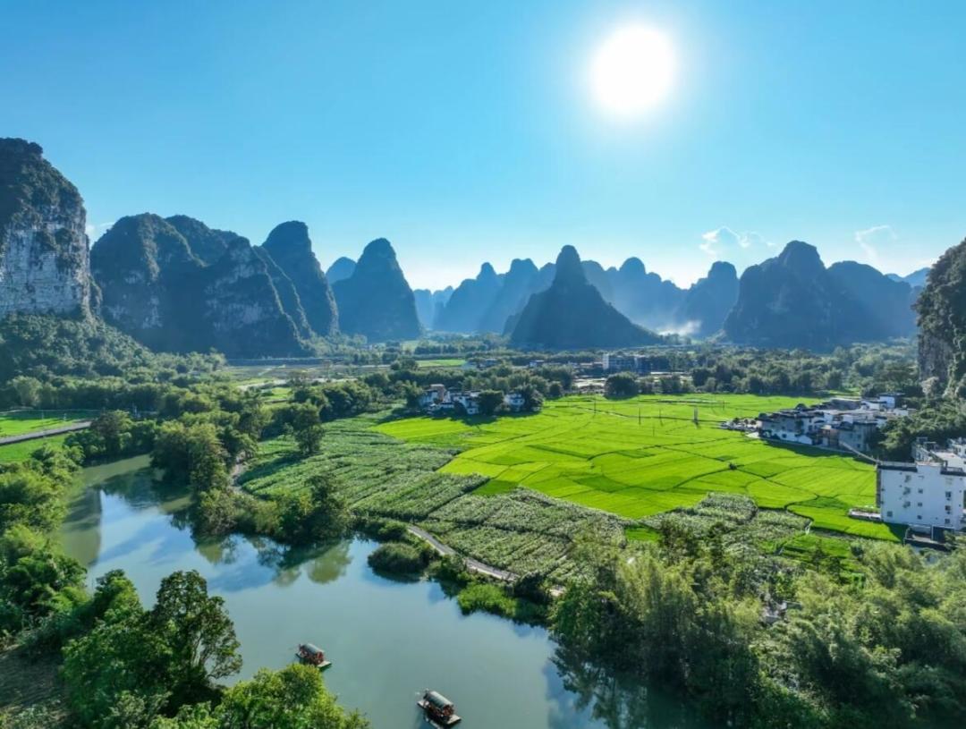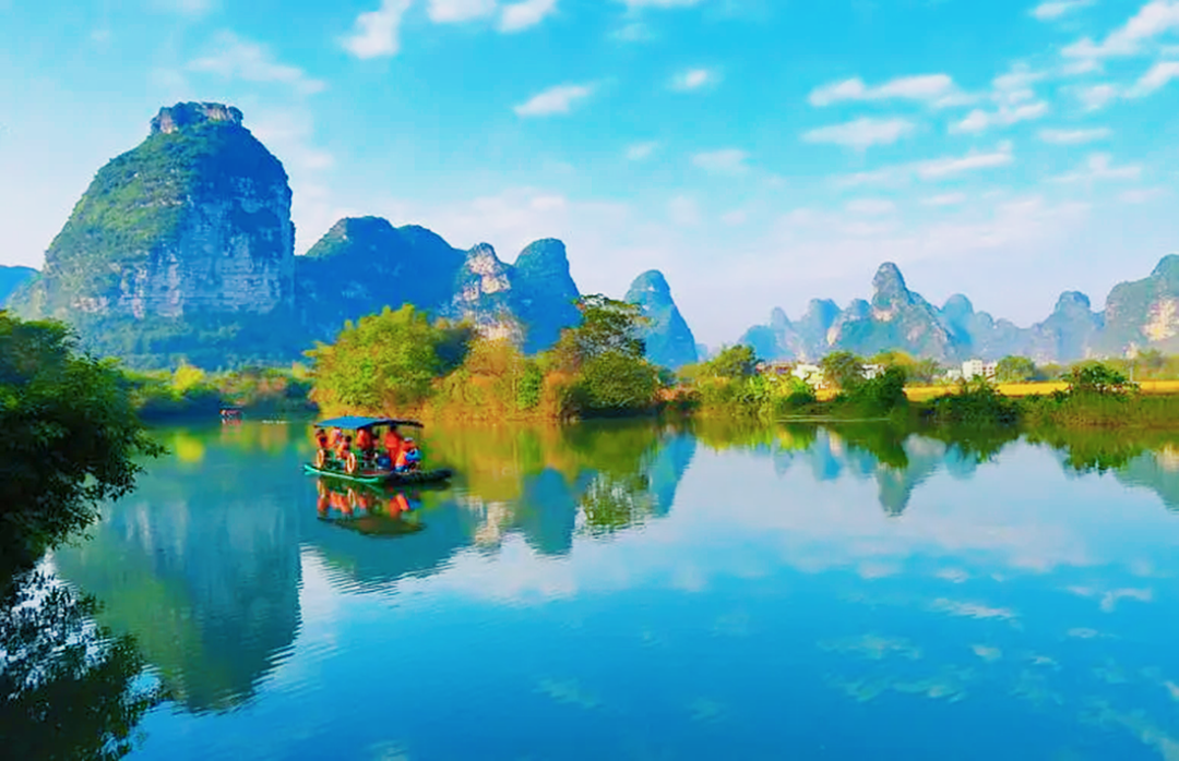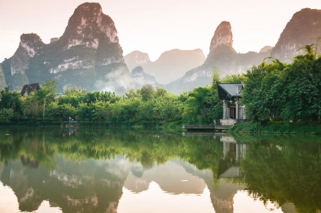 13:30 左右【明仕田园】国家4A级景点,这里山青水秀,翠竹绕岸,山峰奇特,农舍点缀,极富南国田园气息和浓郁的壮乡风情,获得了“隐者之居”“邮票上的山水田园”等美誉。
