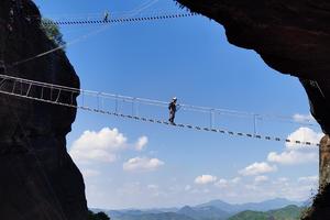 天空栈道飞拉达即建在景区内的越王头边上的绝壁之上,全长420米,攀爬高度100余米,有天空之桥、悬棺栈道、西藏桥、绝壁天梯、悬空栈道等多个子项目组成。