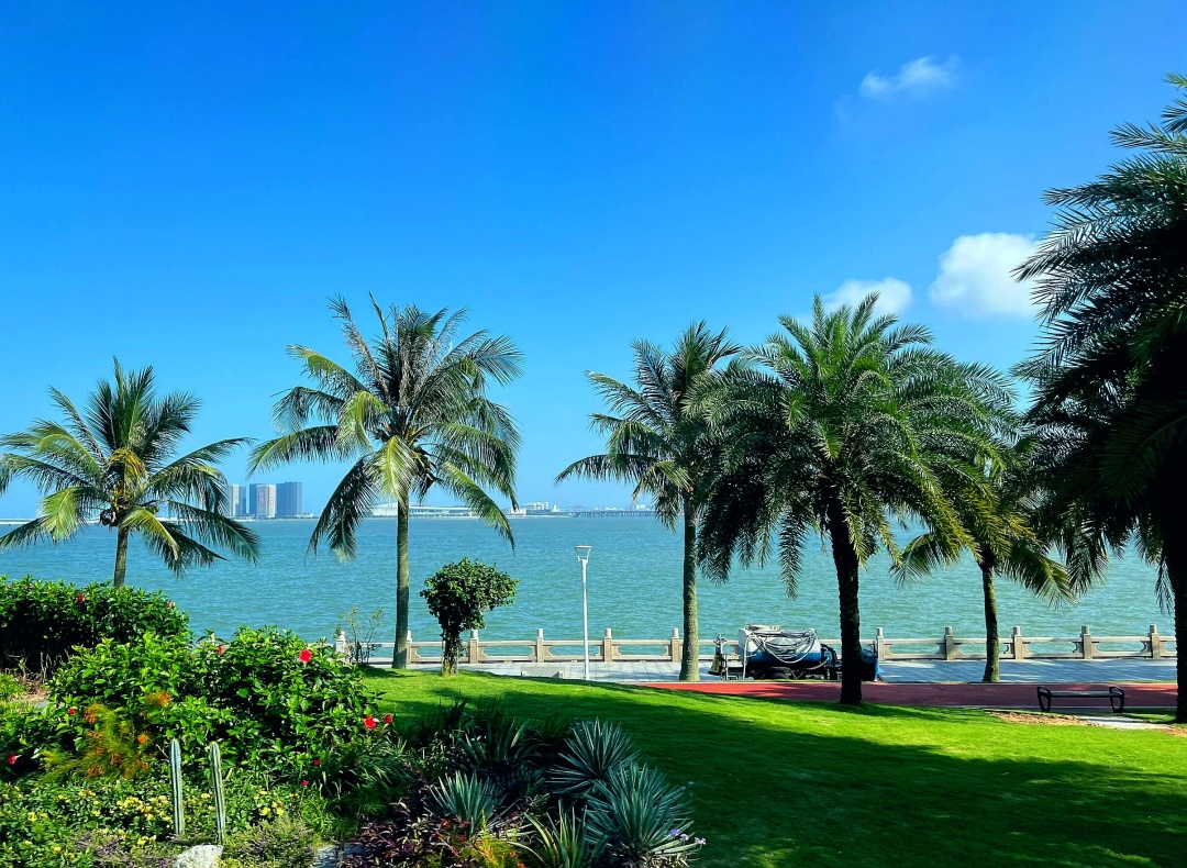 岛上精细的绿化妆点着滨海绿道非常唯美上镜