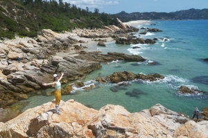 15:30 左右翻过小山坡,远眺双月湾沙滩,一望无垠的沙滩