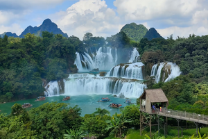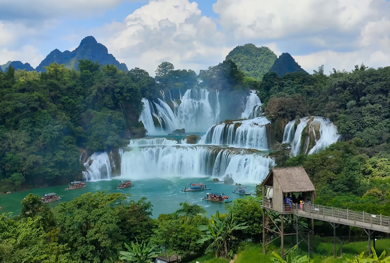 07:30 退房上车,前往【德天跨国瀑布】景区,约2小时车程。到达景区服务中心,购票后,转乘景交车进入景区,检票后即可近距离浏览著名的亚洲第一、世界第四的跨国大瀑布,瀑布横跨中、越两国,38道大小不一的急流从不同角度飞泻而下,呈三级跌落。景区内设有多个不同角度观景台,让你拍照不用愁。