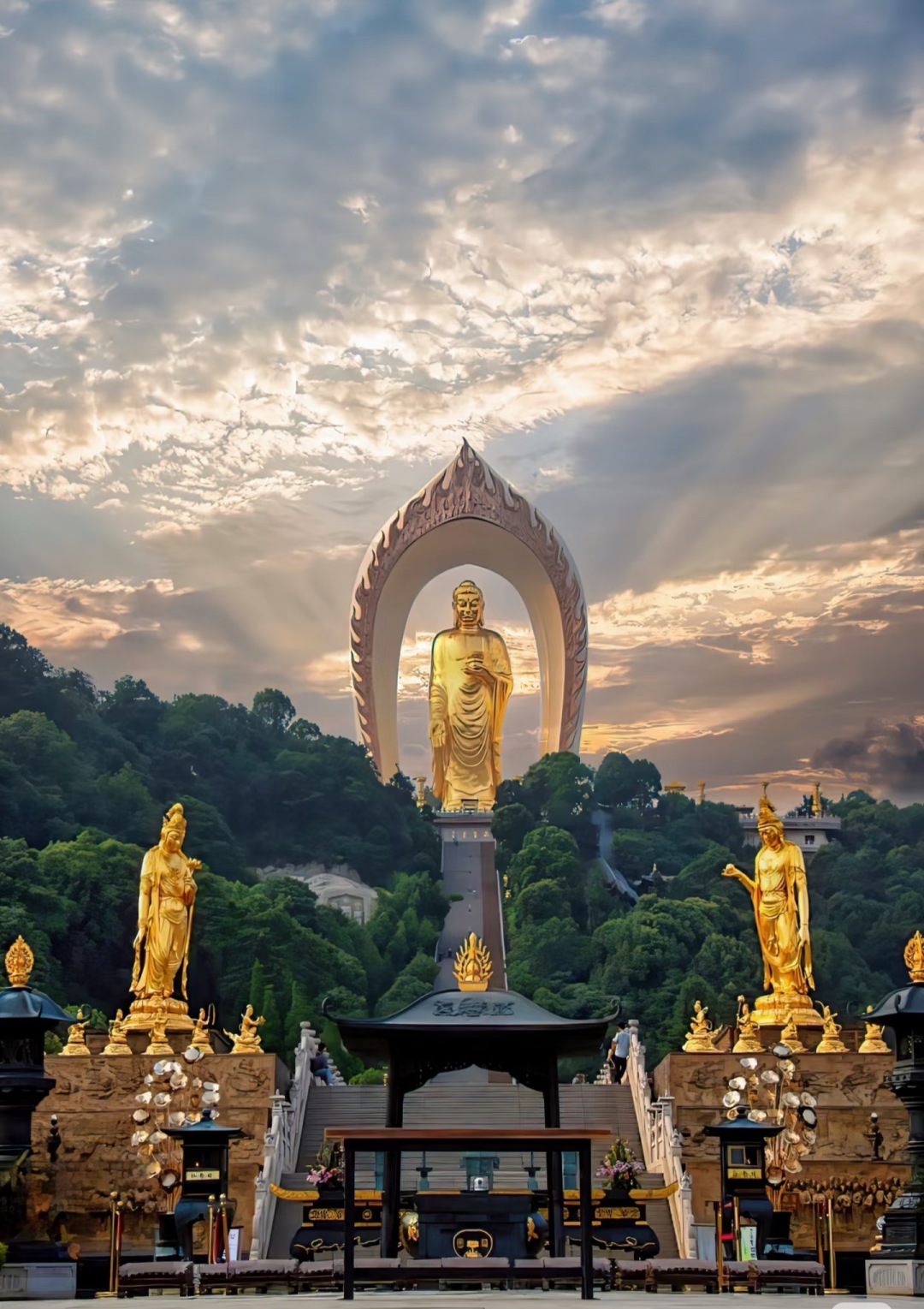 早餐后8点左右车赴【东林大佛】(逢周一闭园更换成东林寺)是佛教净土宗的发源地(东林寺)的标志,是中国及全球第一高阿弥陀佛像。佛像身高48米,以表阿弥陀佛的四十八愿。总高81米佛像坐落在半空中;北依庐山主峰,群山环抱,山水相连,弥陀坛城,净宗道场,朝圣胜地,是一方集朝圣、修行、弘法、教育、慈善、安养为一体的净土。以四十八米阿弥陀佛接引铜像为核心,组成部分包括净土文化区、新东林寺、比丘尼院、隐逸文化区、安养区、海会堂、大德精舍区等。