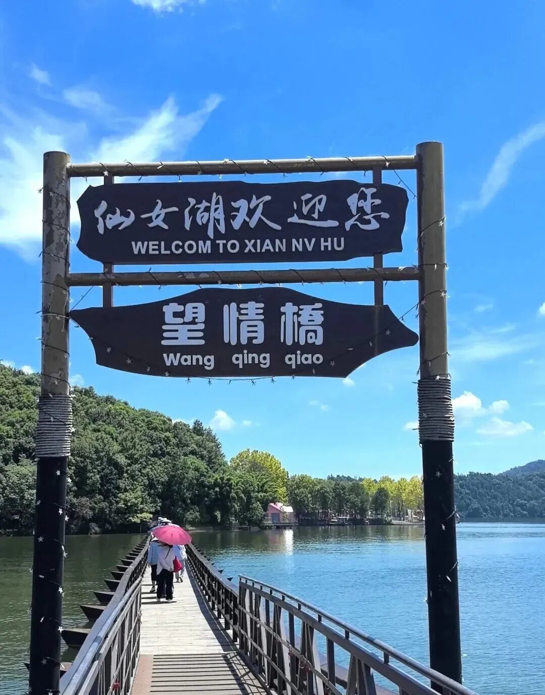 登龙王岛,俯瞰仙女湖全景,此为不二之选。此岛雄踞湖心,海拔190.5米,是湖中最高处。沿步道而上,清风拂面,草木葱茏,鸟鸣悦耳。山顶设有开阔观景台,凭栏远望,湖水如镜,岛屿如珠,远山如黛。