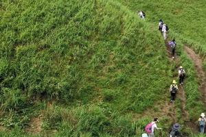 沿着萍乡最美旅游公路到达武功山游客服务中心。乘坐换乘车到石鼓寺,山下简单休整,可在商店补充点登山所需水源和食品。