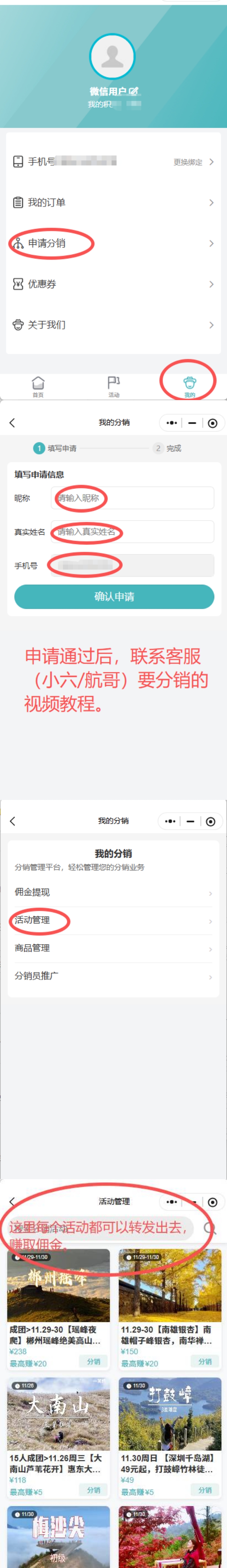 你的朋友 同事 网友想参加活动,把活动发给他(或群里)报名后你就有钱了,以后他自己从任何渠道进小程序报名你一样有佣金拿(永久锁粉),费用越高佣金越高。